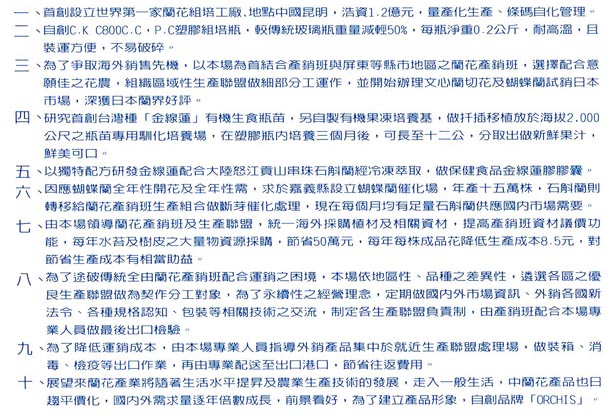 美麗與哀愁 吳明坤的創業歷程 走入台灣長穎公司的蘭花溫室,搖曳生姿的蘭花迎面而來,然而繽紛的花海卻隱藏著一個美麗與哀愁的故事。負責人吳明坤先生原本是業餘的愛蘭人士,在偶然機會裡,成為蘭花產業的經營者。並在2003年義大利國際蘭花展上,獲得一個銀賞獎和兩個銅賞獎,吳明坤談到他的創業過程:「原本種蘭花是我的興趣,只當成副業、玩賞用,結婚時蜜月旅行到日本參觀了世界蘭展後,才發覺原來蘭花是可以當成大事業來經營,包括日本與美國的一些大企業,都投入很多心血做國際行銷。回來後我就與太太重新規劃把蘭花當成正業,並成立公司來經營。」 將對蘭花的興趣轉為企業經營的吳明坤,1989年因為人工與土地成本的考量,選擇到中國雲南投資,但卻遭到意想不到的結果。「雲南人力成本比台灣低30倍,可是他們的觀念落後台灣20年,這是我們經營比較困難的地方。運輸方面也是一個瓶頸,我們的花要轉到曼谷、香港才能送出去,所以成本變成很高。」除此之外,吳明坤還提到一個重要的原因。「中共政府介入公司的經營,給我們產生很多困擾。最後沒辦法,只好完全割捨結束掉,大概有70公頃的溫室,產能每年有500萬株左右,全部都沒有回收。」 在看似低廉的工資下,卻隱藏著看不到的額外成本,加上當地政府對經營的干預,一個樂觀的投資,變成鎩羽而歸的下場。吳明坤忍痛結束了已經投資7億元,耗盡十二年心血的事業,毅然決然的回到臺灣。 「還好臺灣有留著」,就是當初根留臺灣的決定,讓吳明坤得以選擇在臺灣重新出發,甚至經由結盟擴大發展。「台灣市場太小,一定要外銷到國外去。但是要面對國外,像荷蘭,日本,歐美的大型蘭花公司,我們沒辦法競爭,所以我們這個產業聯盟組起來後,可以細部分工,降低成本,才能面對國外大企業的競爭。」吳明坤表示:「在台灣單打獨鬥的時代已經過去,唯有分工整合,才能提升競爭力。」 吳明坤首開蘭花業者結盟先河,並提供研發及行銷的協助,互蒙其利。「因為我和荷蘭有很多接觸的經驗,這帶給我很多新的概念,說做國際分工,做整合,包括產業聯盟這個架構,都是荷蘭人給我的啟發。」吳明坤提到當初成立聯盟的想法。「我們大概有40個基本盟員,底下大概有200多個生產廠商合作起來,他們專門做生產工作,行銷包裝外銷部分則由長潁負責。」 一個盟友講到他自己的經驗:「在台灣的話一般花農都是單打獨鬥,雖然你種的花很好,如果沒有一個聯盟或一個組織來將生產到銷售連成一貫的話,整個效率就不高,因此有聯盟以後對我們一般花農改善很大。」目前「蘭花產業聯盟」正以300萬株年產能,70%外銷的事實,展現結盟實力。吳明坤將他在中國慘痛的失敗經驗,轉化為再出發動力,利用產業結盟、產銷分工,以低成本高效率進軍國際市場。 原本看似「一盤散沙」的台灣中小型蘭花生產業者,經由企業結盟以勤奮樸實、眾志成城的精神奠定生產基礎與規模,進而藉由創新、研發以繽紛多彩,形、香、色兼具的蘭花新品揚威國際。只要有心經營,在哪裡都會是贏家。@(http://www.dajiyuan.com) |