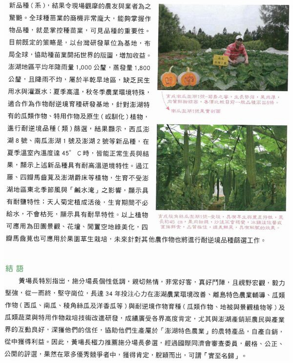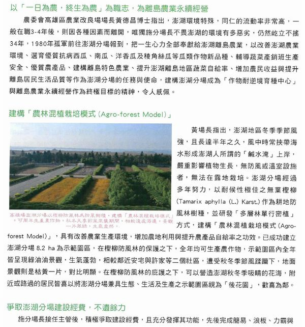 行政院農業委員會高雄區農業改良場 副研究員兼澎湖分場分場長