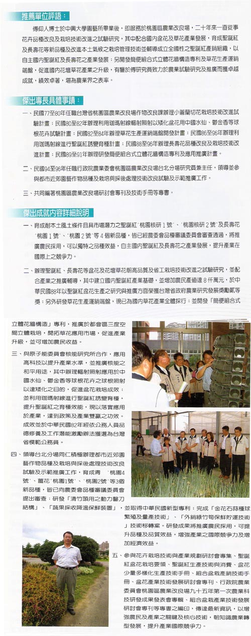 農委會桃園區農業改良場台北分場研究員兼台北分場主任