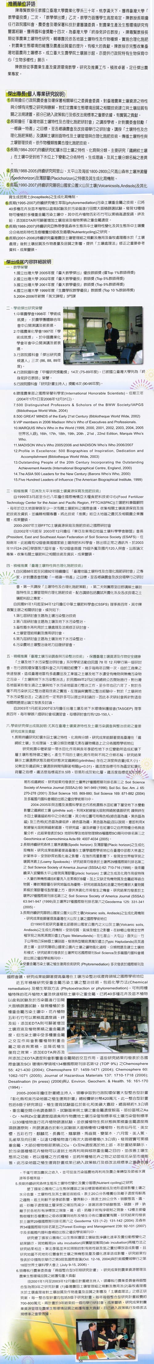 教學、審議委員、農業生產生態環境研究、土壤特性研究、展示館、國科會獎勵14次