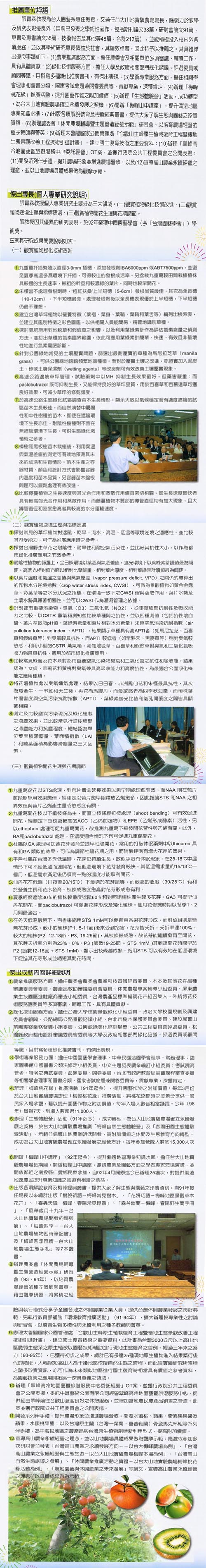 觀賞樹木、園藝學研究法、觀賞植物開花調節、造園學及實習、特殊環境綠化技術、草坪管理技術