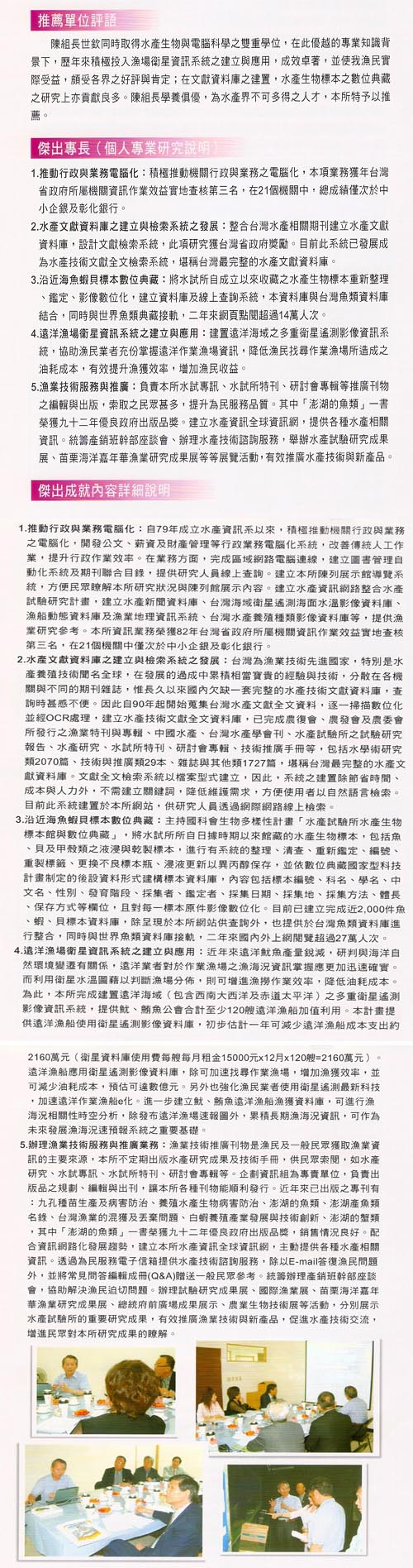 沿近海魚蝦貝標本數位典藏 30屆傑出農業專家