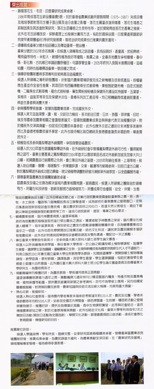 台東農改場場長、落花生、毛豆、印度棗研究