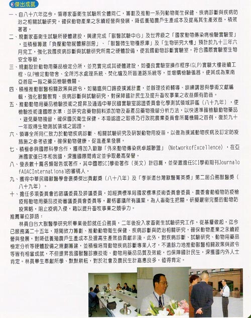農委會家畜衛生試騐所前所長、動物衛生保健、疾病診斷防治