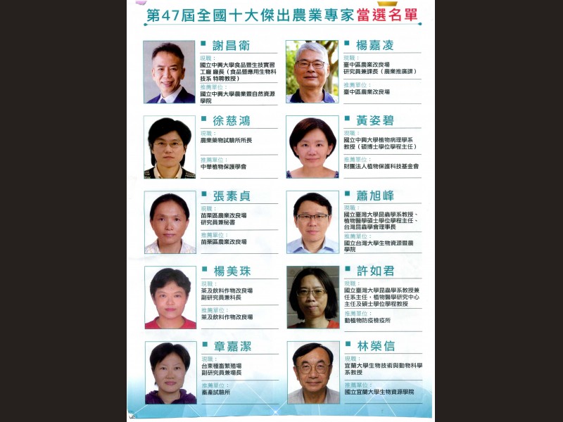 8月16日 國際同濟會台灣總會 假台中市葳格國際會議中心舉行第51屆全國年會。會中表揚第49屆全國十大傑出農業專家;農業部陳俊言司長致詞並頒發獎牌及當選證書